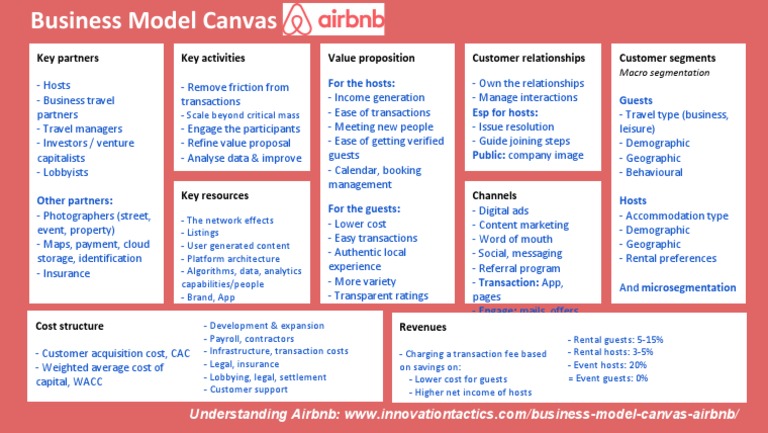 57 thoughts on business model canvas (bmc) de airbnb. They understand how all of the elements are connected. On the one side it enables owners to list their space and earn rental money. Along with this, the cost structure and revenue streams of airbnb have also been listed. What is the sharing economy?